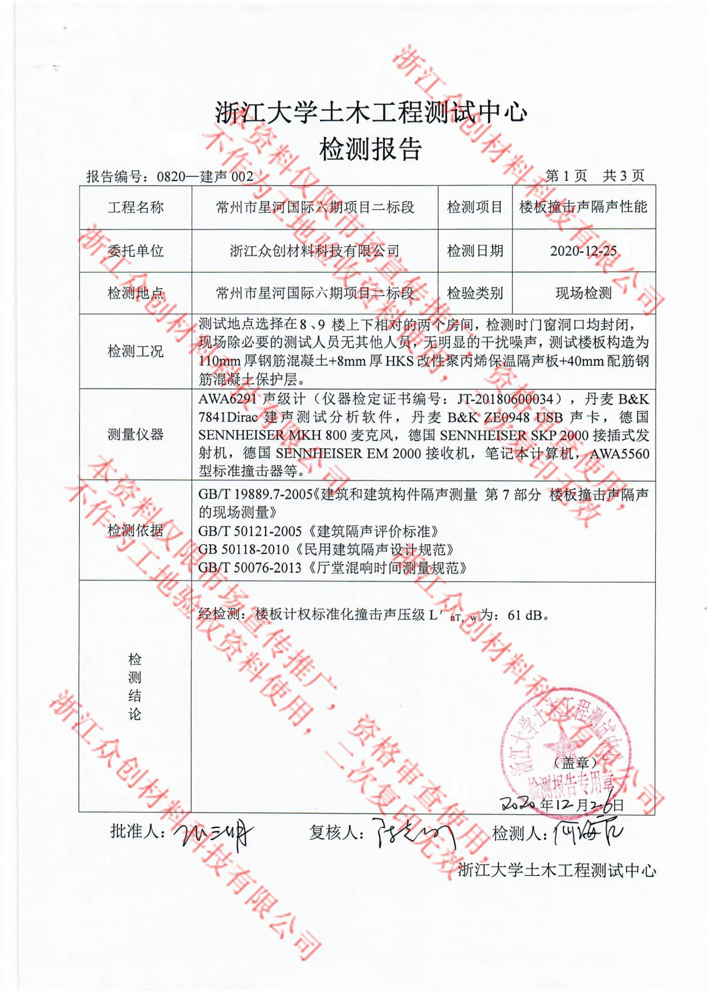 根據(jù)測試在同等隔音效果下,HKS改性聚丙保溫隔聲板厚度更薄,占用層高更少,撞擊隔聲改善到62dB。